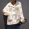 Женская мода и зима плюшевая клетчатая куртка с длинными рукавами и лацканами повседневная куртка
