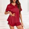 Женская шелковая пижама с коротким рукавом из сатина, комплект из 2 предметов, домашняя одежда на пуговицах