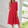 Женское повседневное модное платье миди с круглым вырезом и рукавом три четверти — купить товар онлайн с бесплатной доставкой по всему миру!