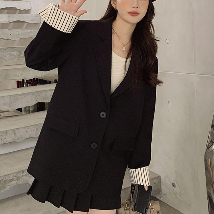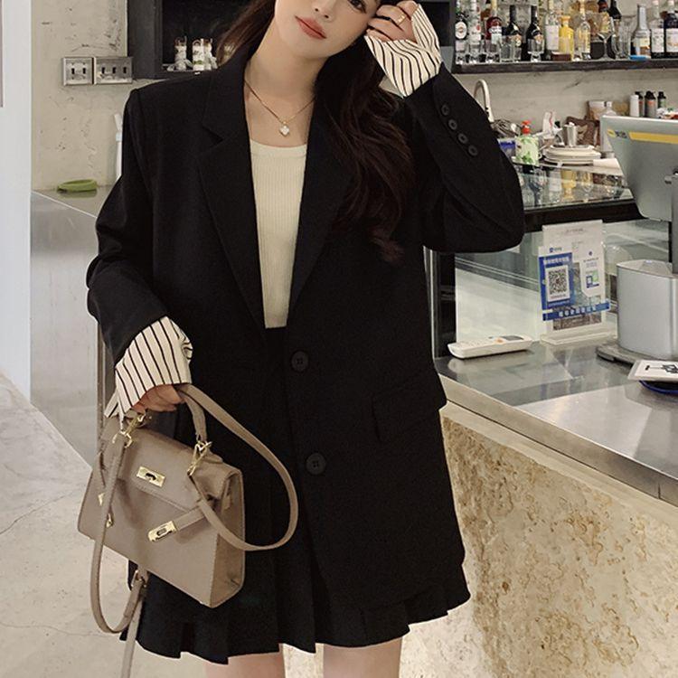 Новый дизайн, маленький повседневный костюм, черный, с разрезом сзади, в полоску, пиджак для женщин