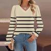 Женский повседневный топ с длинными рукавами и полосатым принтом, с v-образным вырезом