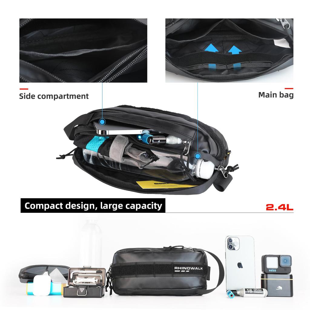 Сумка на руль велосипеда Rhinowalk, сумка на переднюю часть рамы велосипеда, сумка на колесиках для горного шоссейного велосипеда, сумка на плечо для поездок на работу (Повседневная сумка через плечо) черный
