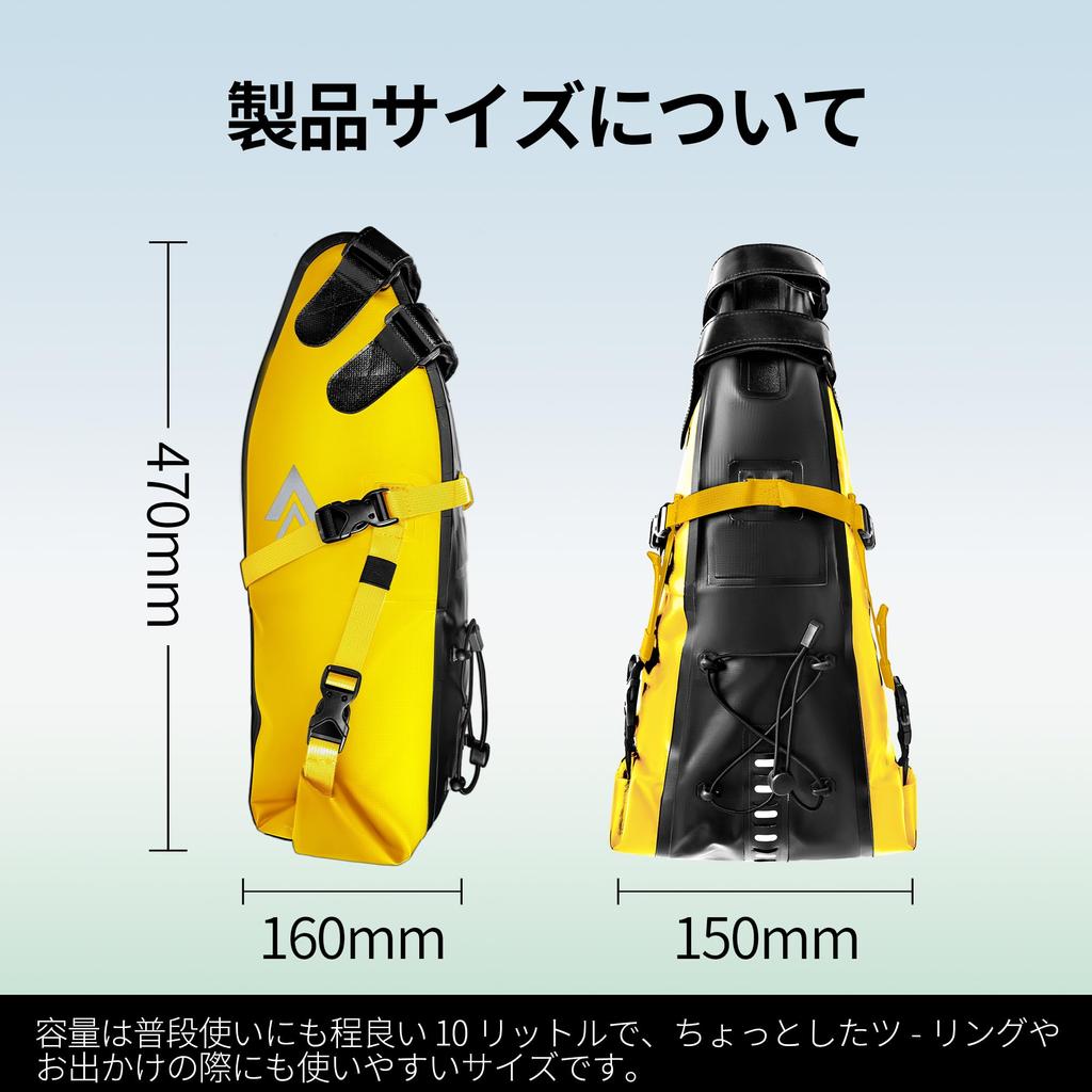 AFISHTOUR Сумка для велосипеда Водонепроницаемая велосипедная сумка 10 л Большая вместимость Сумка-седло для велосипеда Сумка для хранения дорожного велосипеда (желтый)
