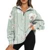 Женская мода повседневная толстовка с длинным рукавом и принтом на молнии с высоким воротом и заниженными плечами