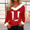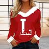 Женская футболка с принтом ко Дню святого Валентина, рубашка с длинными рукавами, шерстяной воротник, топ с V-образным вырезом и надписью «Любитель вечеринок»