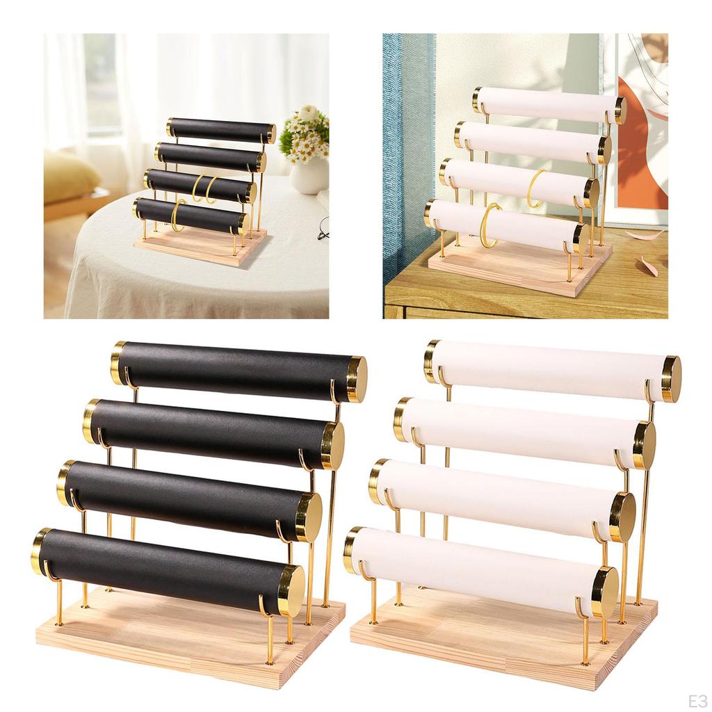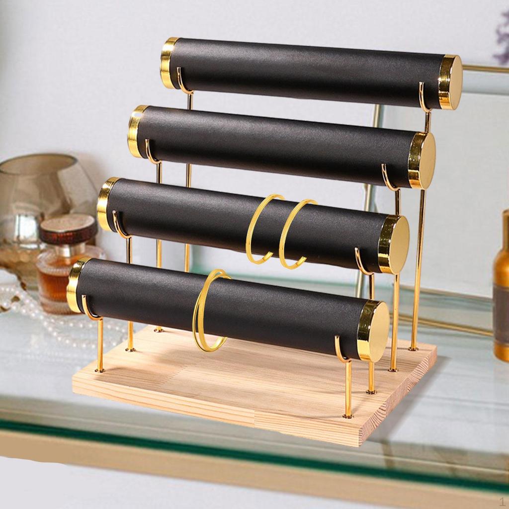 - 【Витрина для ювелирных изделий】Этот держатель для ювелирных изделий имеет большой размер и оснащен четырьмя стержнями, позволяющими упорядочить все ваши браслеты, браслеты, часы, ожерелья или браслеты.