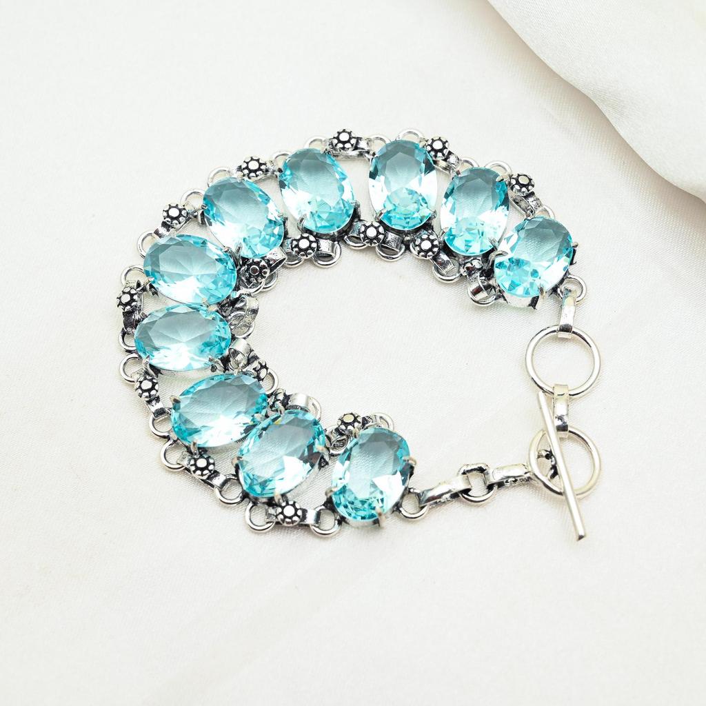 Браслет-манжета Swiss Blue Topaz, браслет из настоящего драгоценного камня, браслет-манжета из стерлингового серебра 925 пробы, ювелирные изделия ручной работы, регулируемый браслет для подарка, женские ювелирные изделия