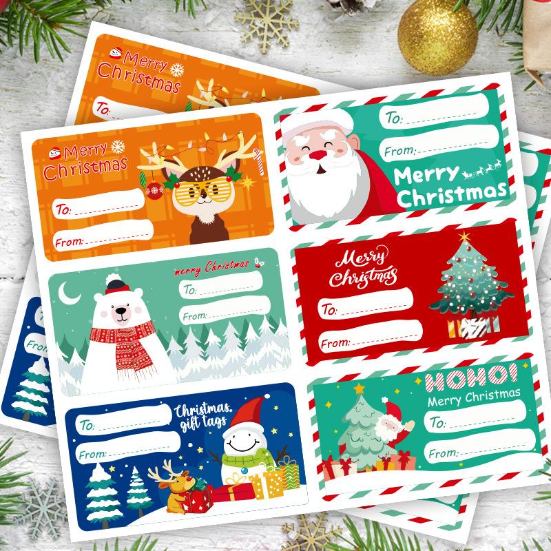 1 комплект Счастливого Рождества, спасибо, наклейка, клейкая этикетка, бумага для печати, бирки с именем «Откуда», рождественские украшения, канцелярские принадлежности