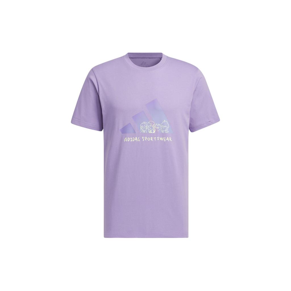 Adidas Футболка с рисунком 3 аниме-принта, буквенный логотип, круглый вырез, хлопковая свободная футболка с коротким рукавом, мужские топы светло-фиолетового цвета JP4586