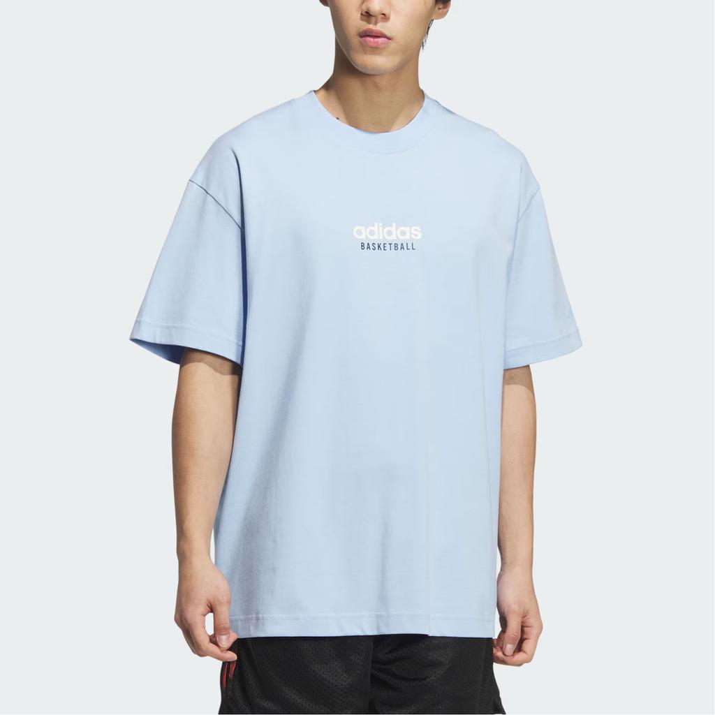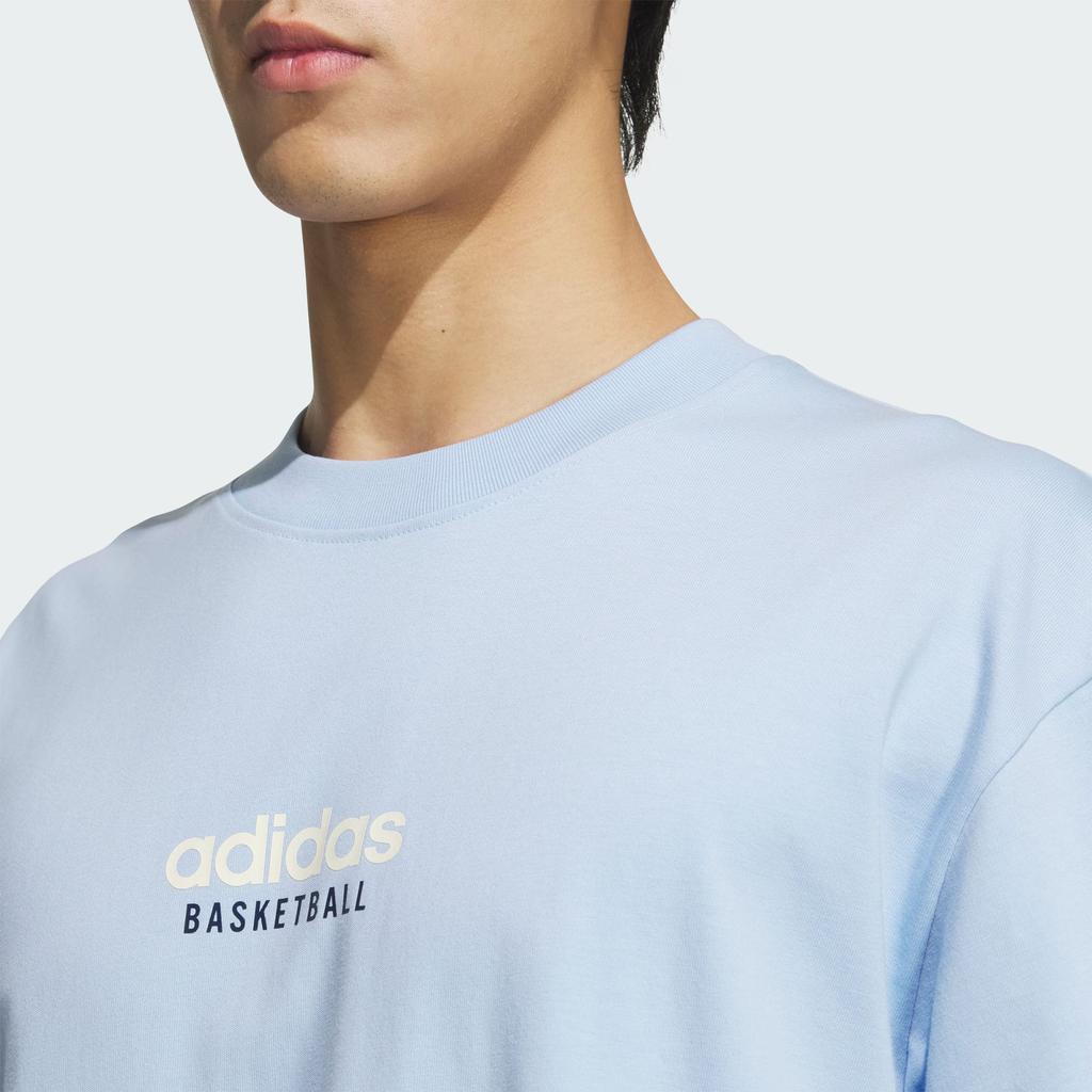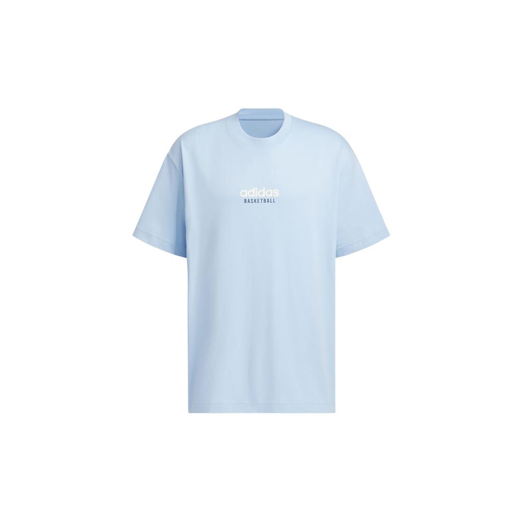 Adidas Футболка с графическим принтом и баскетбольным принтом, спортивная, с круглым вырезом, мужская, ярко-синяя, JD6404