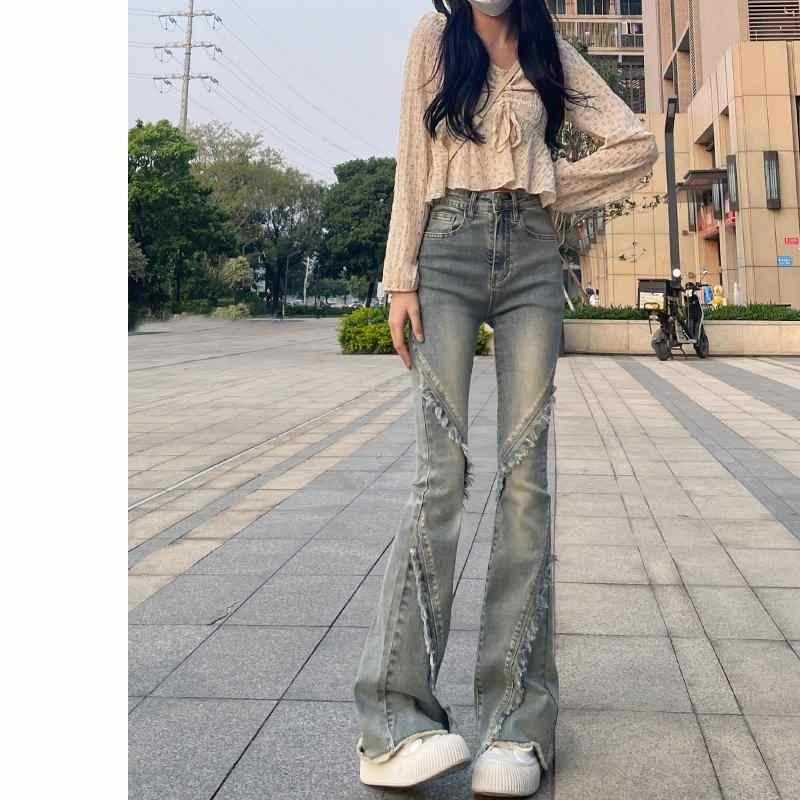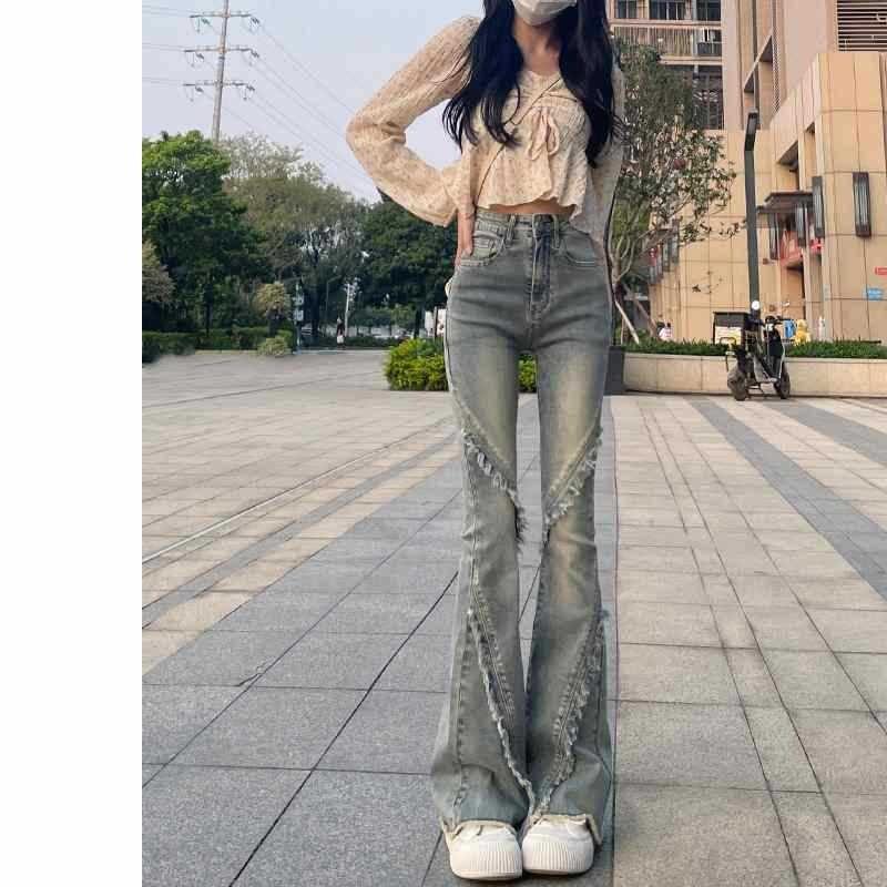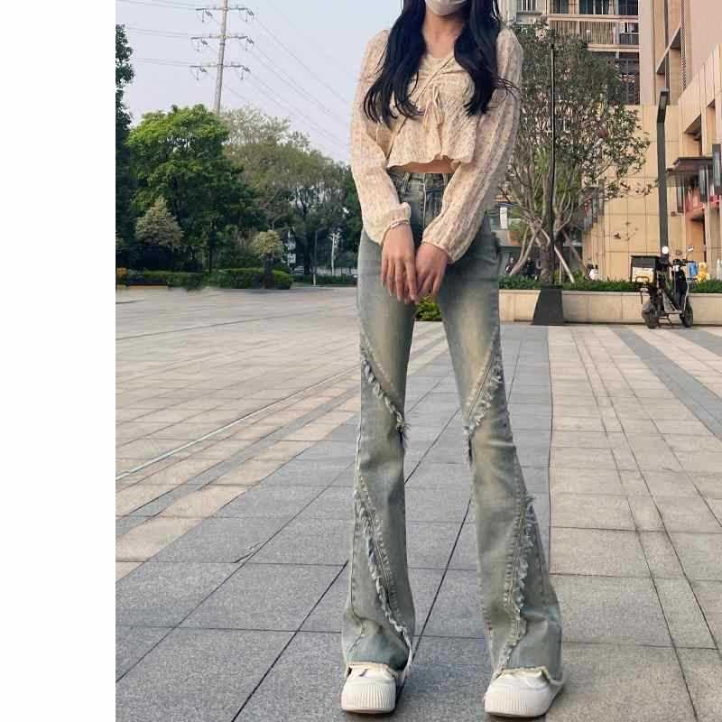 Джинсы с отделкой под волосы женские с высокой талией, слегка расклешенные брюки для детей