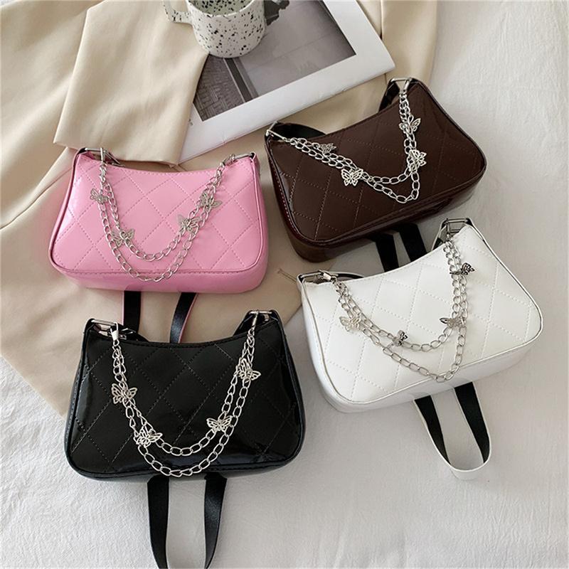 Женская сумка через плечо из искусственной кожи, модная винтажная сумка-бабочка с цепочкой из чистого цвета на молнии