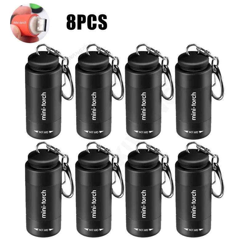 Portable LED Keychain Light USB Rechargeable Flashlight Compact Waterproof Outdoor Super Bright Emergency Lighting Spotlight