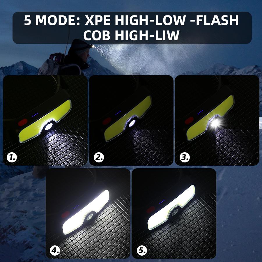 Портативные светодиодные фонари COB для наружного использования, встроенный аккумулятор, USB-перезаряжаемый налобный фонарь для кемпинга, рыбалки, скалолазания