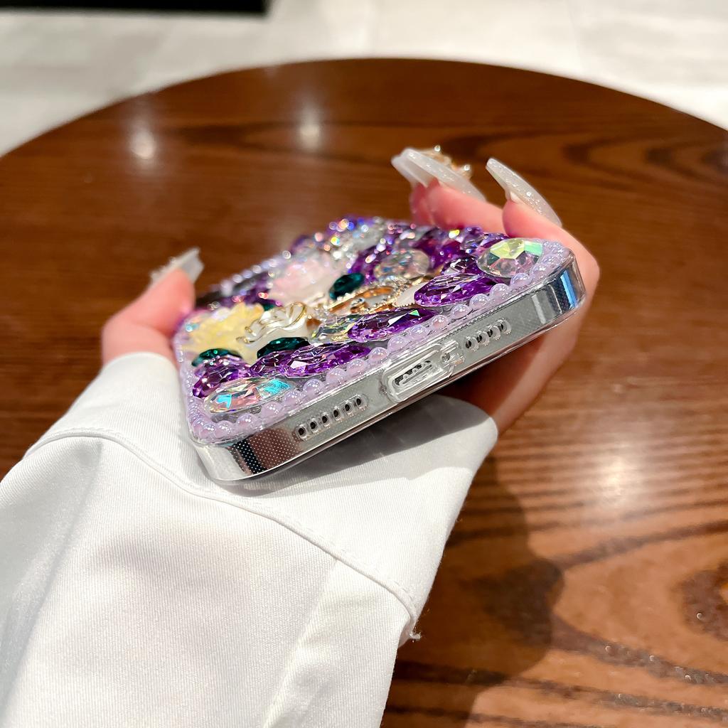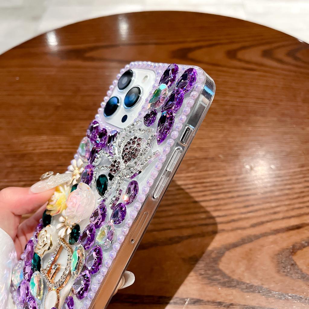 Подходит для iPhone16promax Чехол для мобильного телефона Apple 15pro Full Diamond Spider Flower 16 Роскошный чехол для мобильного телефона со стразами