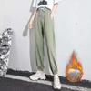 2025 Модные женские зимние теплые длинные брюки из флиса, плотные леггинсы, однотонные, больших размеров, эластичные, на шнуровке, повседневные спортивные брюки, шаровары, повседневные брюки — купить товар онлайн с бесплатной доставкой по всему миру!