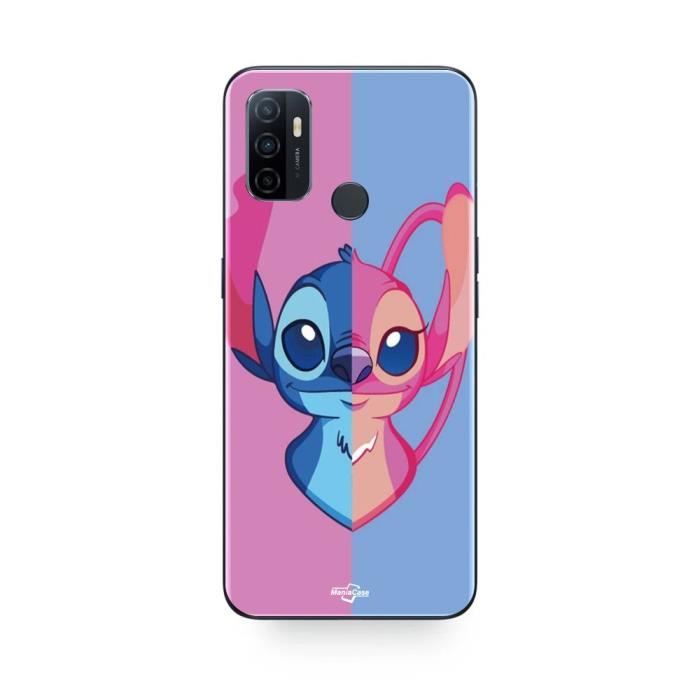 Coque - Maniacase - Oppo A32 - Stitch et Angel - Bleu et Rose - Souple
