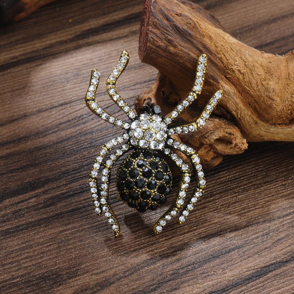 Персонализированная брошь в виде паука из черного бриллианта со стразами из металла для женщин в виде корсажа, винтажные аксессуары на Хэллоуин