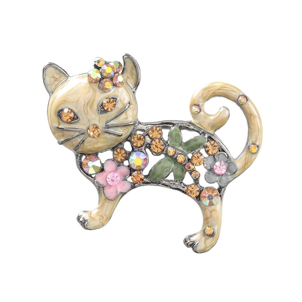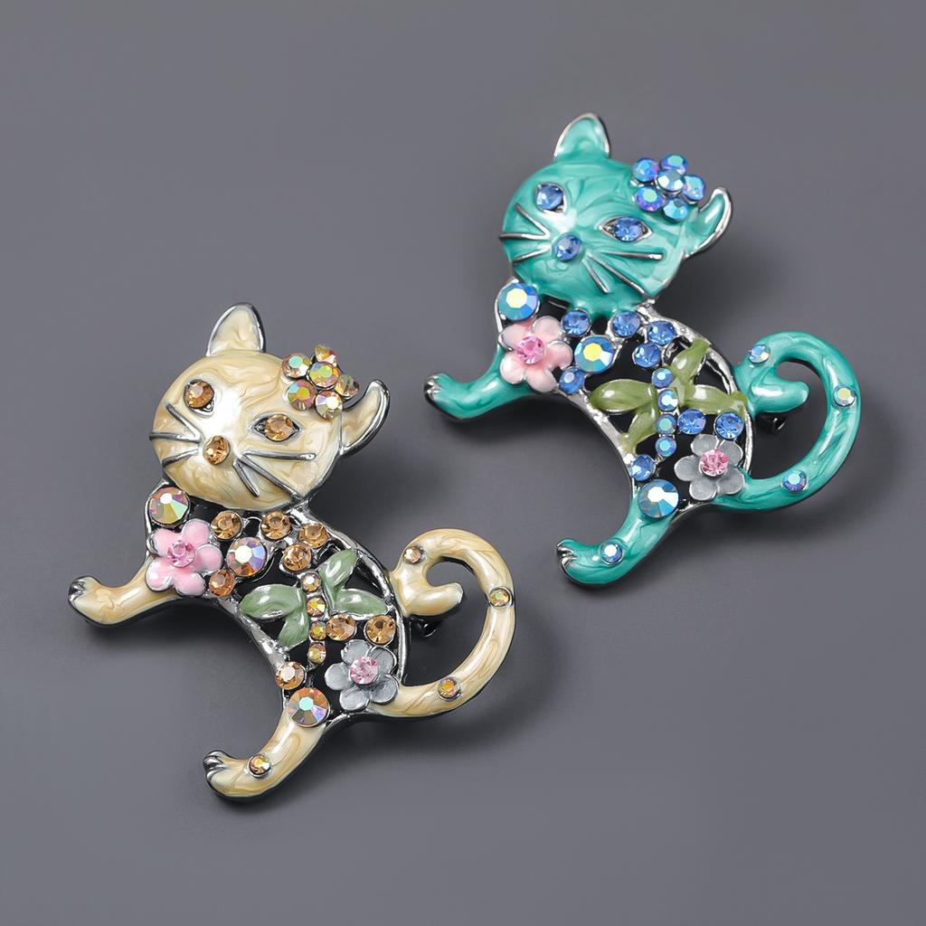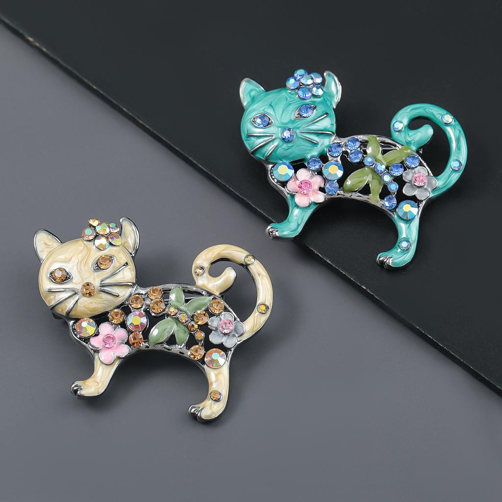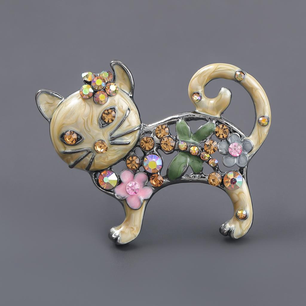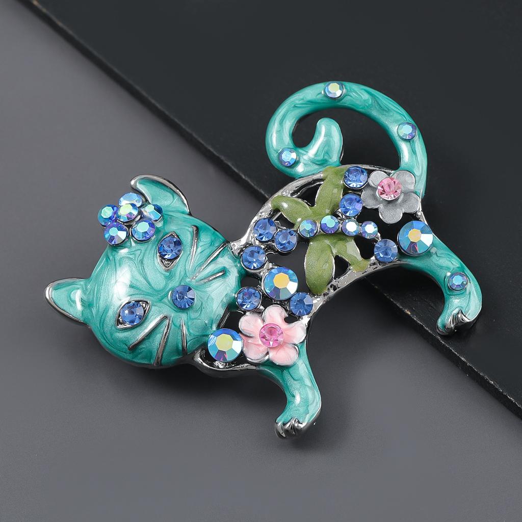 Брошь в виде цветка с бриллиантами в виде кошки, винтажная эмалевая булавка для кошки, популярные аксессуары для корсажа в Интернете