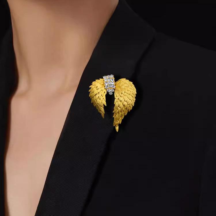 Средневековая золотая брошь в виде крыльев с бриллиантами, женская роскошная темпераментная брошь-корсаж, пиджак, пальто, универсальные аксессуары