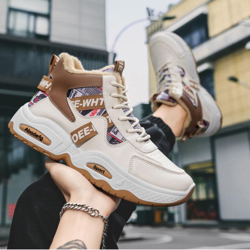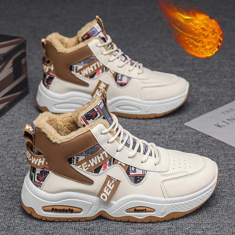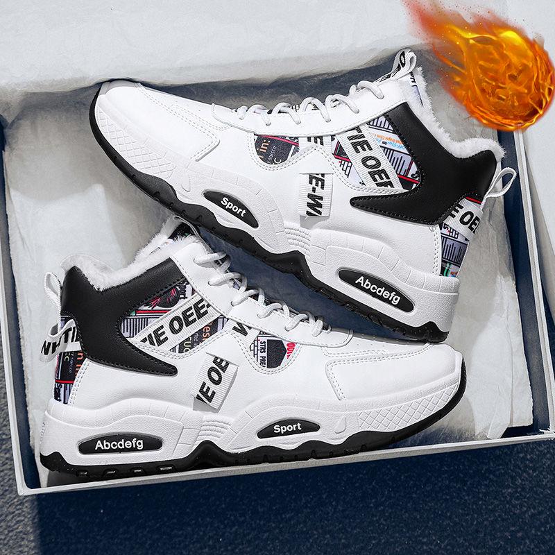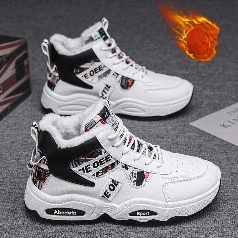 Зимние ботинки для мужчин, высокие ботинки 2024 года, зимние студенческие спортивные плюшевые на шнуровке, нескользящие, удобные, теплые, устойчивые к холоду, хлопковые туфли