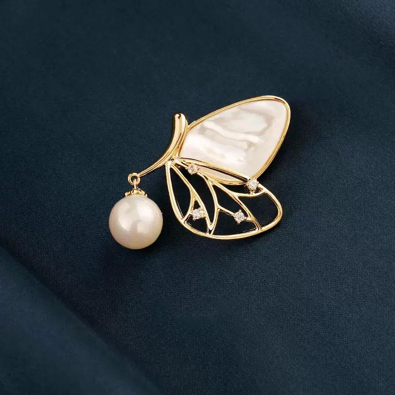 Имитация бабочки-рябчика, брошь-жемчуг, высококачественная женская нежная новогодняя брошь для костюма Tide, универсальный жемчужный корсаж