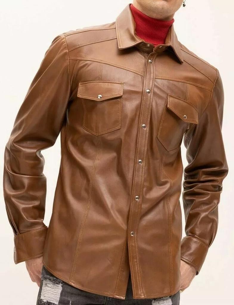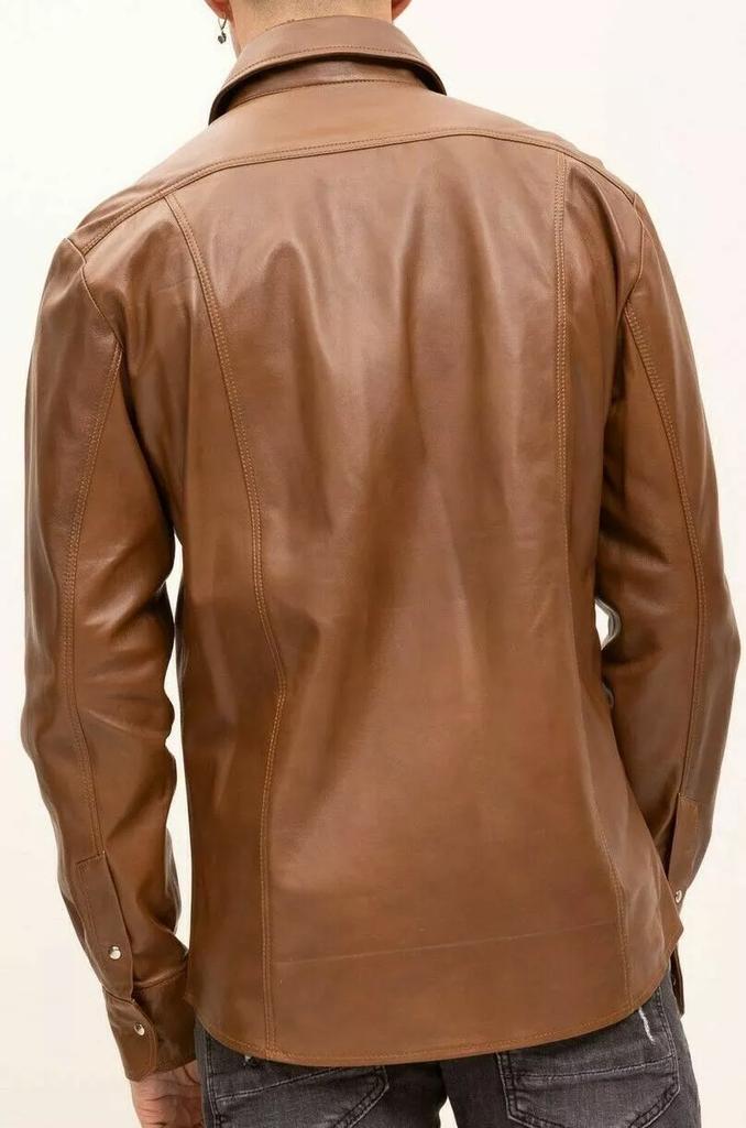 Коричневая рубашка для вечеринки из овчины, формальная, стильная, 100% повседневная, кожа, настоящая ручная работа, для мужчин
