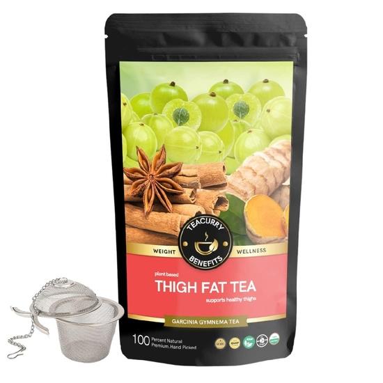 Вкусный чай для жирных бедер - Чай Teacurry для жирных бедер состоит из мощной аюрведической чайной смеси имбиря, корицы, фенхеля, гарцинии камбоджийской, одуванчика, камелии китайской, ашваганды, амалаки, пиппали, харитаки, куркумы, тмина, спаржи, розмарина и кардамона.. Они обеспечивают идеальную смесь чая Thigh Fat для женщин и мужчин.. Чай «Thigh Fat Tea» стимулирует накопленный жир в области бедер и спины, улучшает пищеварение и, таким образом, практически мгновенно сжигает жир.