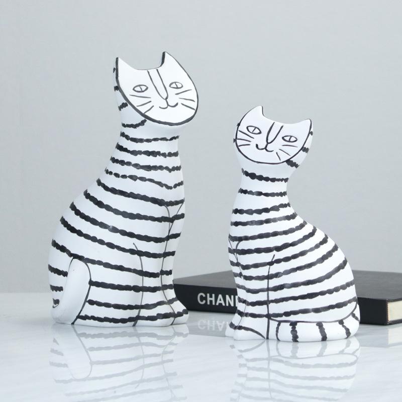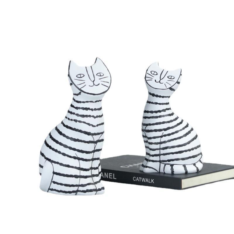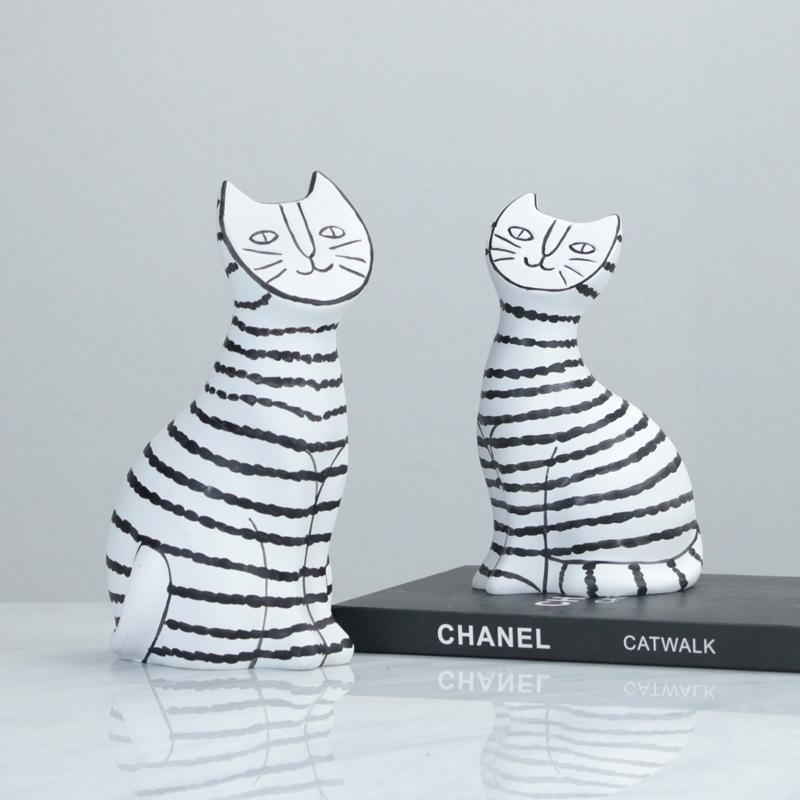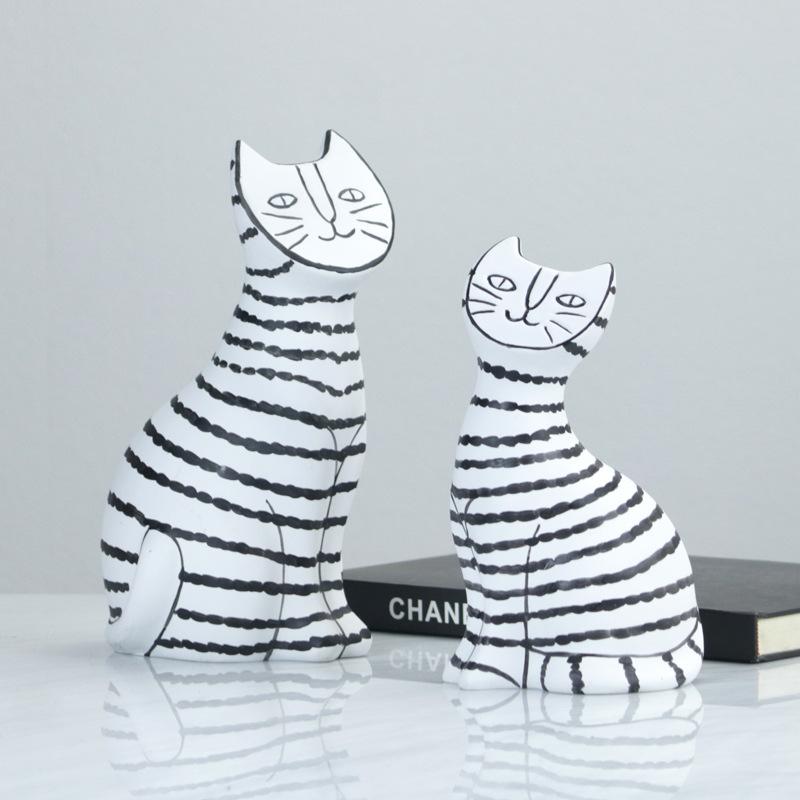 Современный простой европейский стиль, легкая роскошь, черно-белая полосатая смоляная кошка, модель, украшение для дома, офиса продаж, мягкие украшения