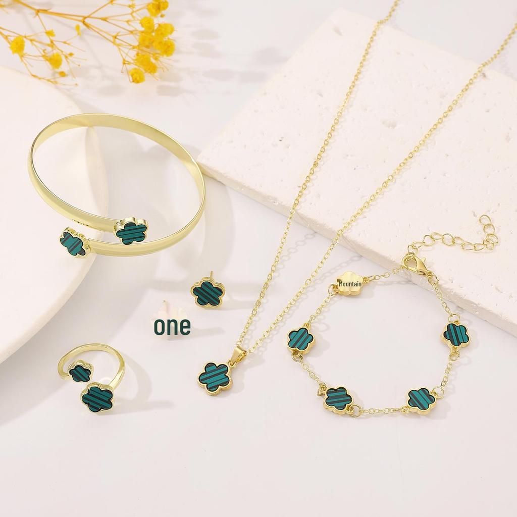 Комплект украшений «Цветок на удачу»: Браслет, серьги, ожерелье и кольцо с пятилистным клевером для женщин. — купить товар онлайн с бесплатной доставкой до всему миру!
