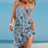 Пляжная одежда Мини-платье с принтом камелии Повседневное современное платье без рукавов Свободный крой Повседневное летнее платье для улицы