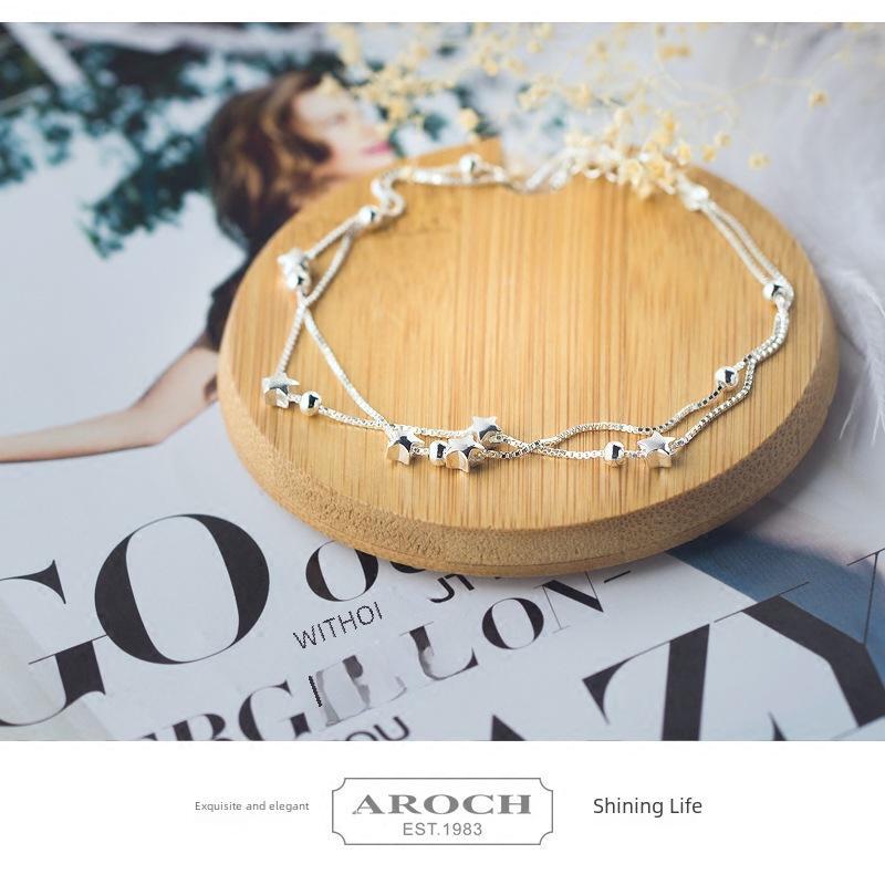 Женский двухслойный посеребренный браслет на щиколотку со звездой - стильный японский и корейский дизайн, модная пятиконечная звезда для босых ног для студентов