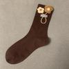 Женские модные носки средней длины с плюшевым медведем и цветком, осень/зима - Кофейный/черный