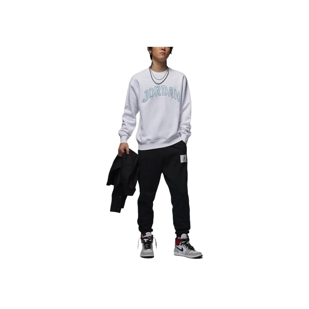 Jordan Флисовая спортивная толстовка с круглым вырезом и длинным рукавом Essentials Letter Print Design, мужская толстовка белого цвета FV7461-100