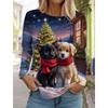 Модная рождественская женская футболка с длинным рукавом Повседневная рождественская Милая кошка и собака Праздничные подарки Топы Harajuku Animal Женская одежда