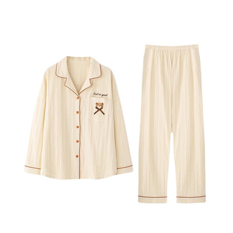 Новый комплект пижамы с длинными рукавами для женщин, весенняя и осенняя пижама из чистого хлопка, корейский стиль, домашняя пижама большого размера — купить товар онлайн с бесплатной доставкой по всему миру!