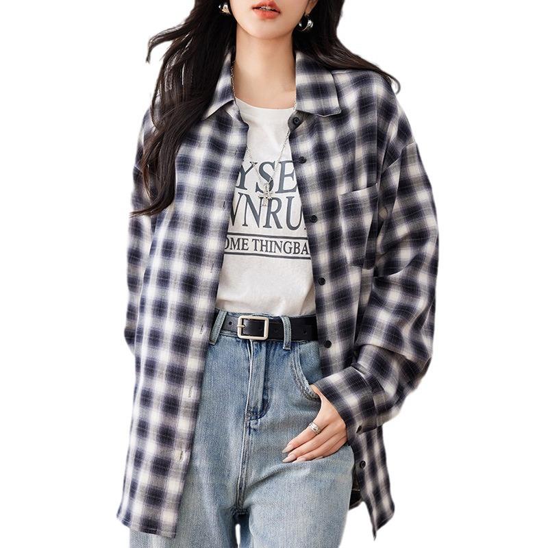 Женский винтажный клетчатый повседневный свободный топ с длинными рукавами — купить товар онлайн с бесплатной доставкой по всему миру!