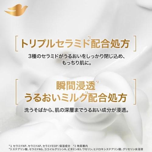 Instant-penetrating*2. Contains moisturizing milk*3 and triple ceramide*4. For long-lasting moisture even after bathing. *² Within the stratum corneum *³ Stearic acid, ceramide NG, cocoyl glycine K, vitamin B3, petrolatum, hydroxyste.. acid, glycerin aqueous solution: moisturizing ingredients *⁴ Ceramide NP, ceramide AP, ceramide EOP: moisturizing ingredients