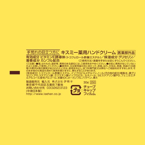 Isehan Kiss Me Лечебный крем для рук, тюбик 30 г. Увлажняет и предотвращает огрубение и сухость рук. Удобный, портативный мини-тюбик 30 г.