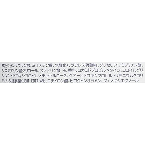 Вода, лауриновая кислота, миристиновая кислота, гидроксид калия, лауретсульфат натрия, глицерин, пальмитиновая кислота, дистеарат гликоля, стеариновая кислота, отдушка, PG, кокамидопр.. бетаин, кокоилглицинат калия, гидроксипро.. метилцелл.., гуар гидроксипро.. хлорид, калия кокосовой жирной кислоты, БГТ, ЭДТА-4Na, этидроновая кислота, метилизо..