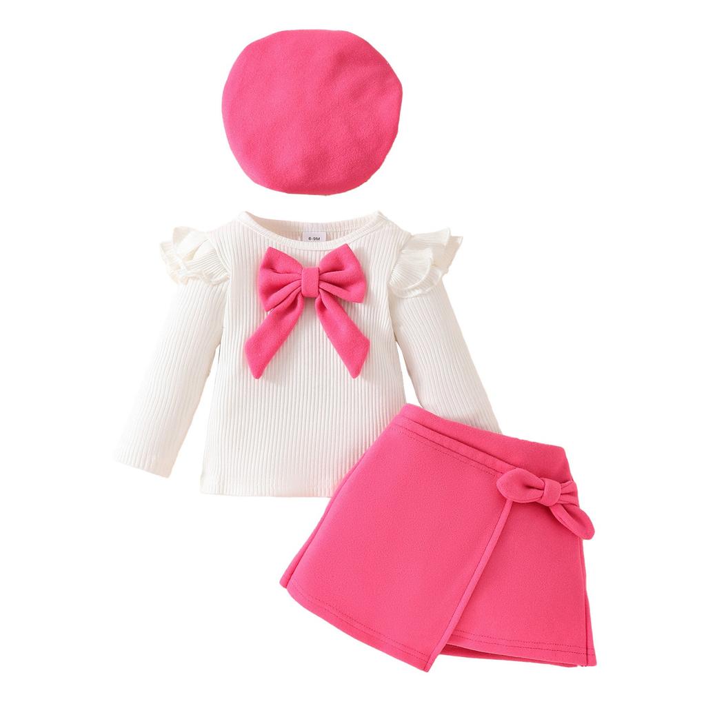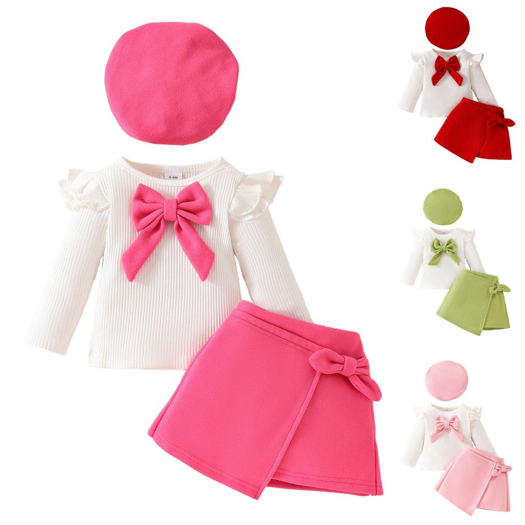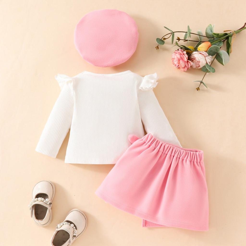 Комплект одежды для маленьких девочек, ребристая футболка с длинным рукавом, топы, юбки со шляпой, 3 предмета, осенняя юбка, наряды 6 месяцев-3 лет