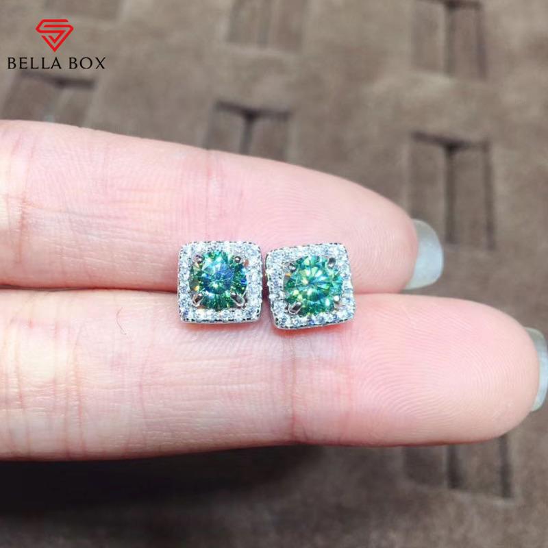 BELLA BOX Восемь сердец, восемь стрел, позолоченные, имитация PT950, сине-зеленые, квадратные серьги Mosan Drill Full Drill для девушки, подарок на День святого Валентина — купить товар онлайн с бесплатной доставкой по всему миру!