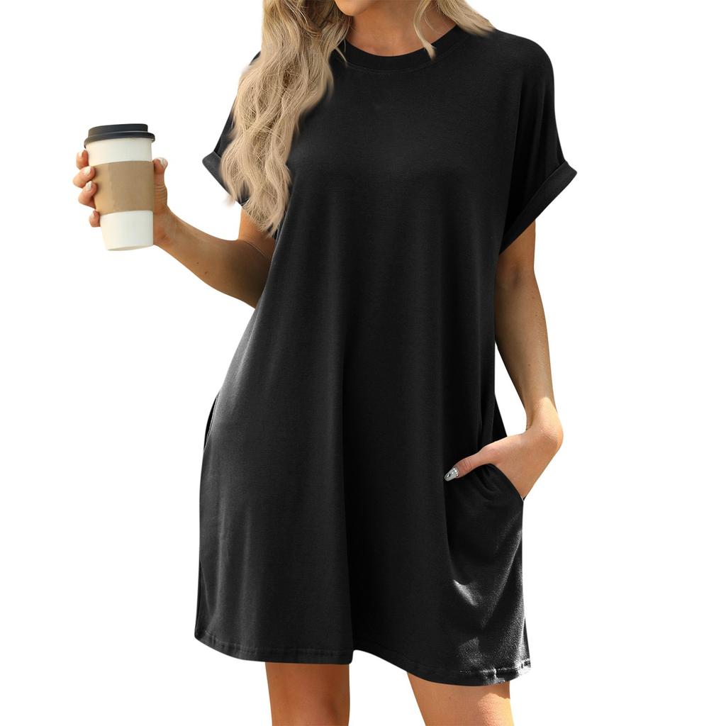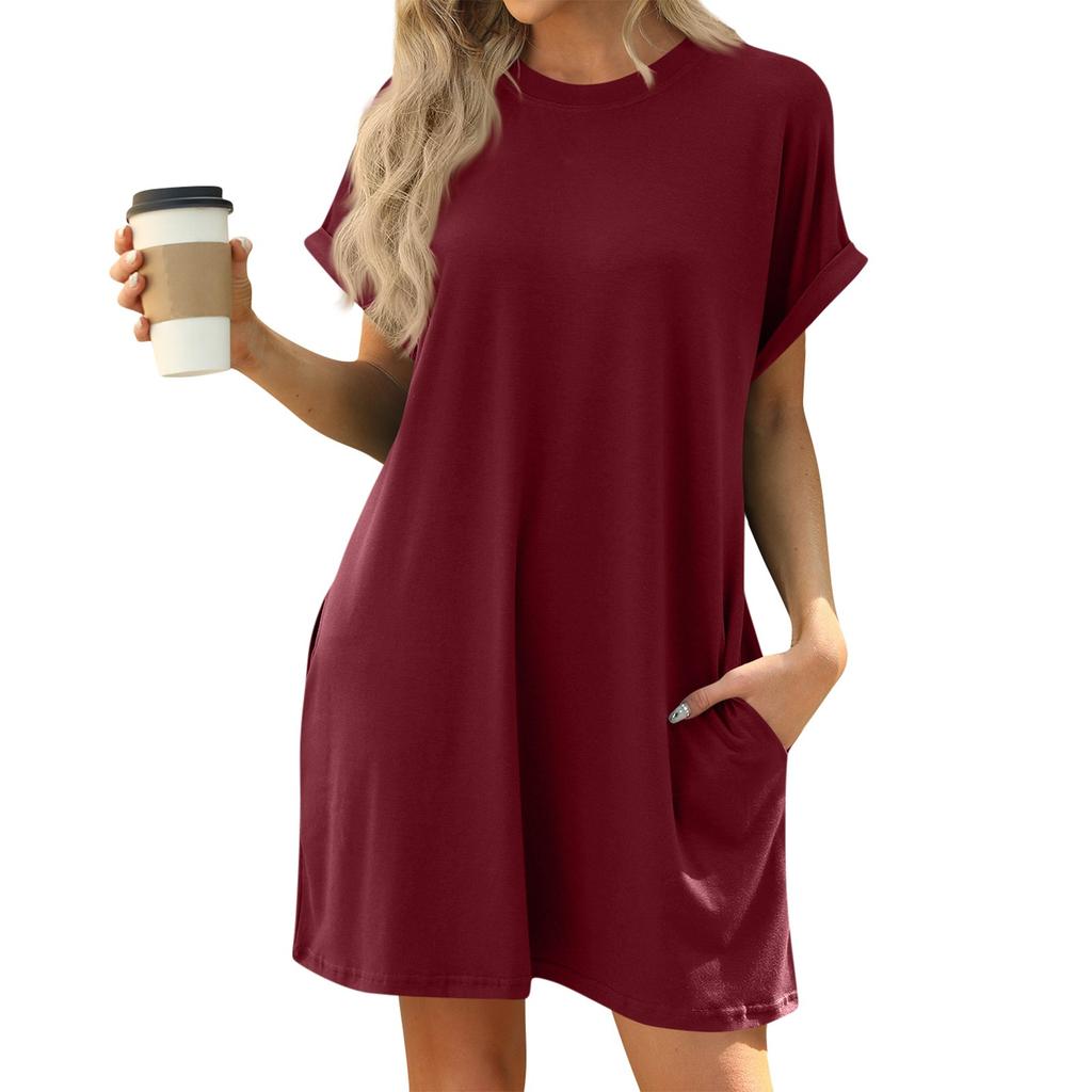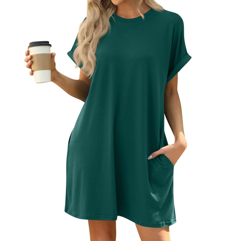 Женское модное однотонное платье свободного кроя с круглым вырезом и короткими рукавами