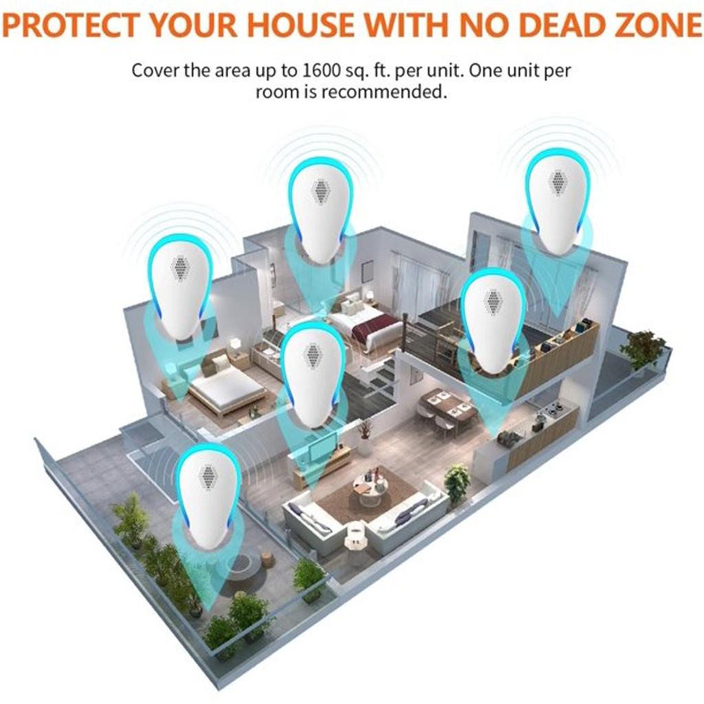 Работает в любое время : Репеллент будет постоянно 22 ~ 65 кГц высокочастотной ультраволной, поэтому вы всегда будете вредителями дома, независимо от того, сколько сейчас времени. Продукт