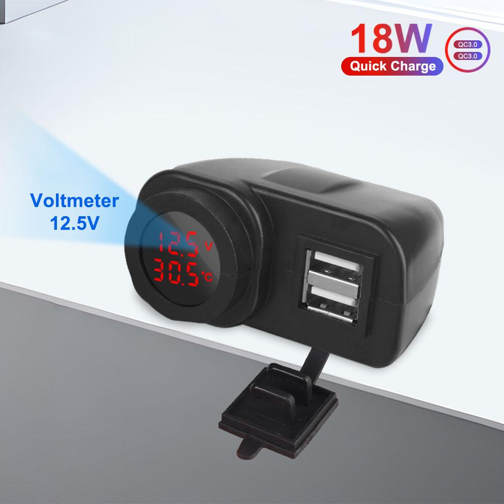12V Мотоциклетные USB-зарядные устройства Разъем PD Type-C Быстрая зарядка QC 3.0 Цифровой вольтметр Термометр Адаптер питания Аксессуары для электровелосипеда