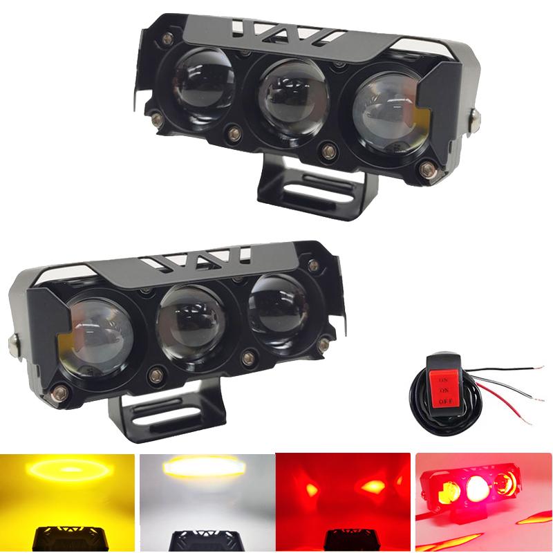 Светодиодные линзы для мотоциклов, вспомогательные противотуманные фары высокой мощности, белые, желтые с красными фарами DRL, фары дальнего света для мотоциклов, квадроциклов, внедорожников