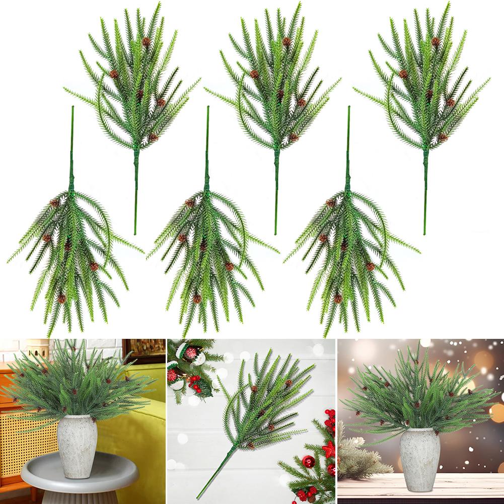 6Pcs Fake Pine Branches with Pine Cones Artificial Cedar Branches Plastic 45cm for Christmas Home Decoration — купить товар онлайн с бесплатной доставкой по всему миру!