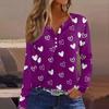 Женская футболка с принтом ко Дню святого Валентина, туника с длинным рукавом и пуговицами, повседневная мода на выходные, базовый топ с V-образным вырезом
