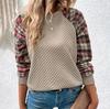 Женская мода повседневный свитер с длинным рукавом в клетку пэчворк свитшот топ