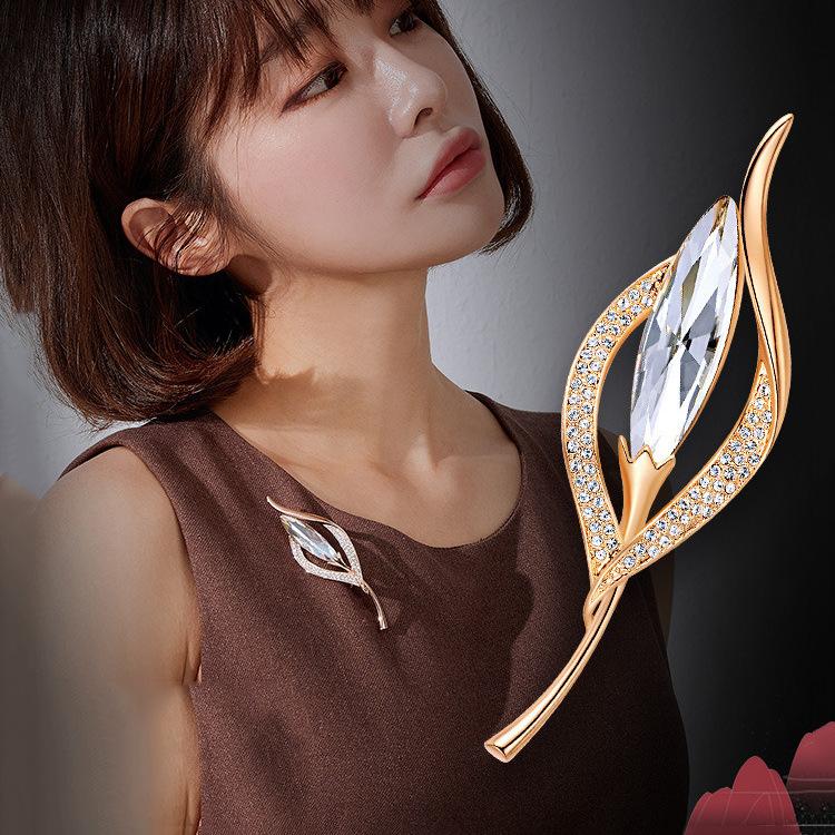 Брошь National Crystal Leaf, индивидуальная женская нишевая брошь высокого класса, атмосферная роскошь, универсальные аксессуары в виде булавки